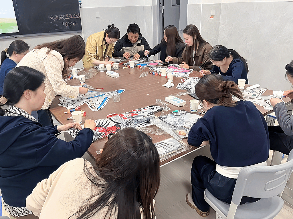 手工体验环节中,师生携手协作、趣味互动。大家凝神静心,分工完成骨架组装、笔墨彩绘等步骤,提笔勾勒山河春色、花鸟纹样,随心创意涂鸦,将春日美好与生活意趣融入纸鸢创作之中。