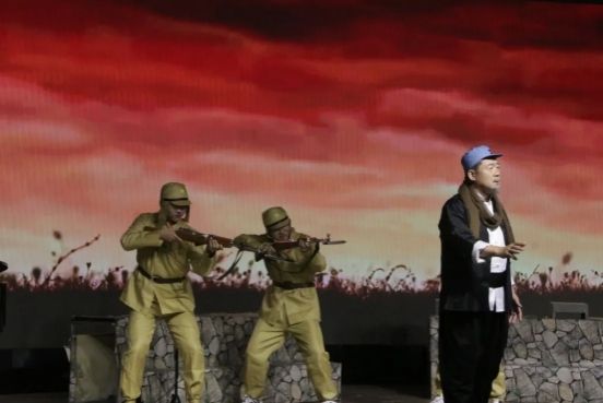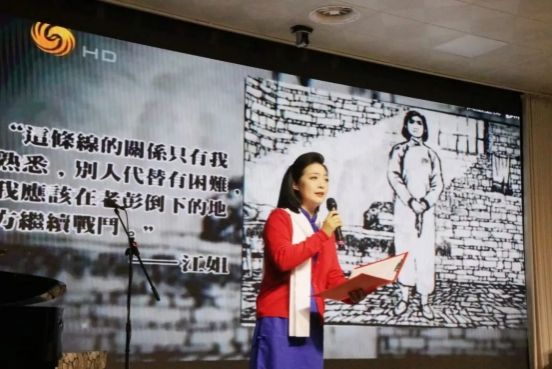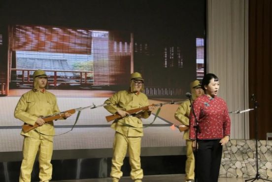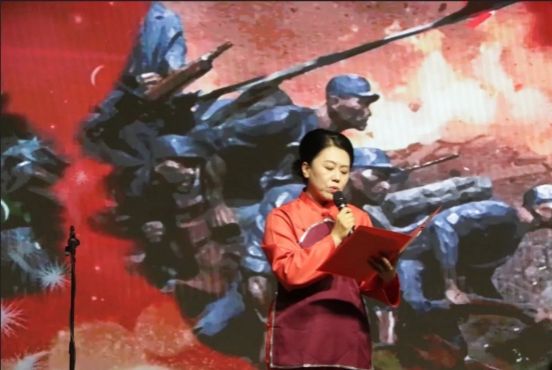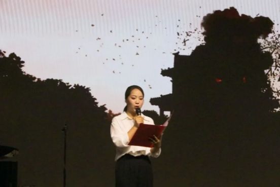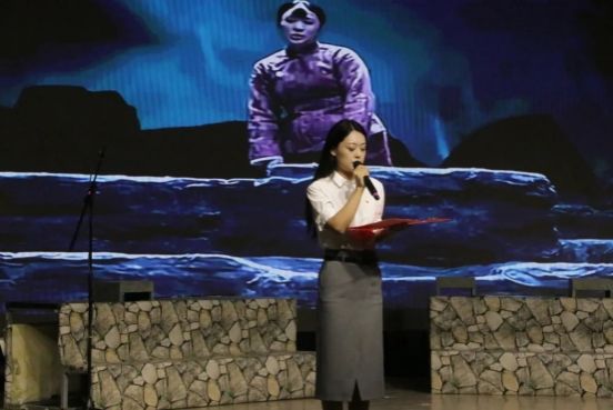 此次思政专场音乐会以中国共产党精神谱系为主线,分为土地革命战争时期、全民族抗日战争时期、全国解放战争时期、中国特色社会主义新时代四个篇章。郭丽萍带领马克思主义学院8位思政课教师通过“沉浸式宣讲”实现历史语境与当代价值的有机串联。她担当《绣红旗》环节的宣讲与表演,通过理论阐释、角色扮演双重教学形式,生动阐述了江姐在面对敌人威逼利诱时的大义凛然,以及为了革命事业甘愿牺牲一切的伟大情怀。