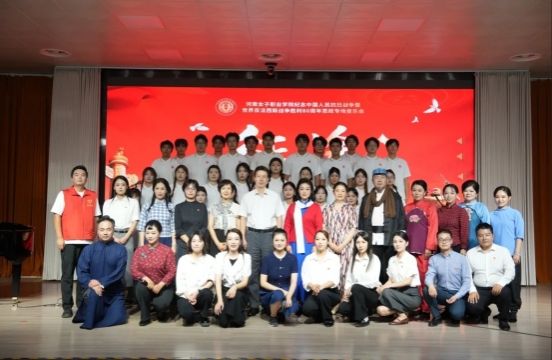 为弘扬伟大抗战精神,推动党史教育深度融入思政课,6月17日晚,河南女子职业学院马克思主义学院教工第二党支部联合音乐与传媒学院举办“征途”——纪念中国人民抗日战争暨世界反法西斯战争胜利80周年思政专场音乐会,校党委书记李立峰,校长郭丽萍,校党委副书记马立,副校长徐红娟,相关二级学院及校直各单位负责人等500余名师生齐聚一堂,在歌剧与思政融合中感悟历史、凝聚力量。