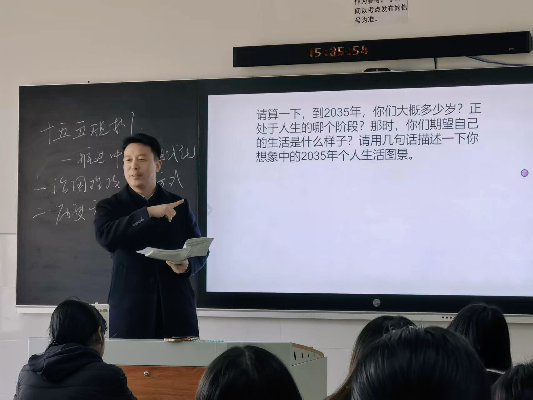 在《形势与政策》课堂上,李立峰认真聆听李军授课。本节课围绕“夯实基础 全面发力——乘势而上、接续推进中国式现代化”核心主题展开,紧扣党的二十届四中全会相关部署,系统阐释了“十五五”时期我国发展所处的历史方位,《中共中央关于制定国民经济和社会发展第十五个五年规划的建议》对未来5年发展做出的顶层设计与战略擘画。授课中,李军以学生学业规划为切入点,巧妙衔接国家发展大局,引导学生深刻领会“十五五”时期夯实基础、全面发力的核心要求,深刻理解坚持党的全面领导的根本优势,课堂氛围活跃有序,师生互动热烈深入,学生的参与积极性被充分调动。
