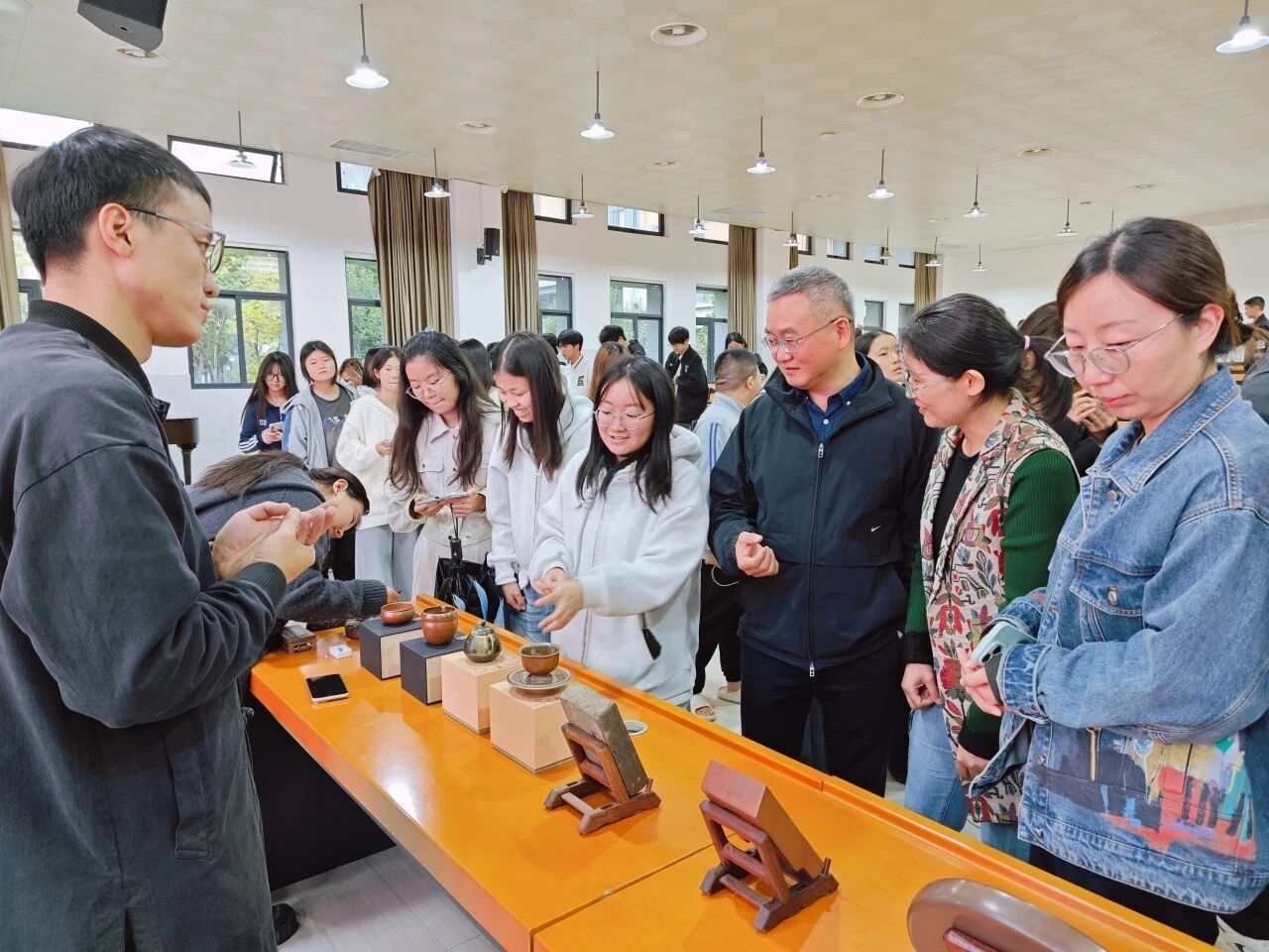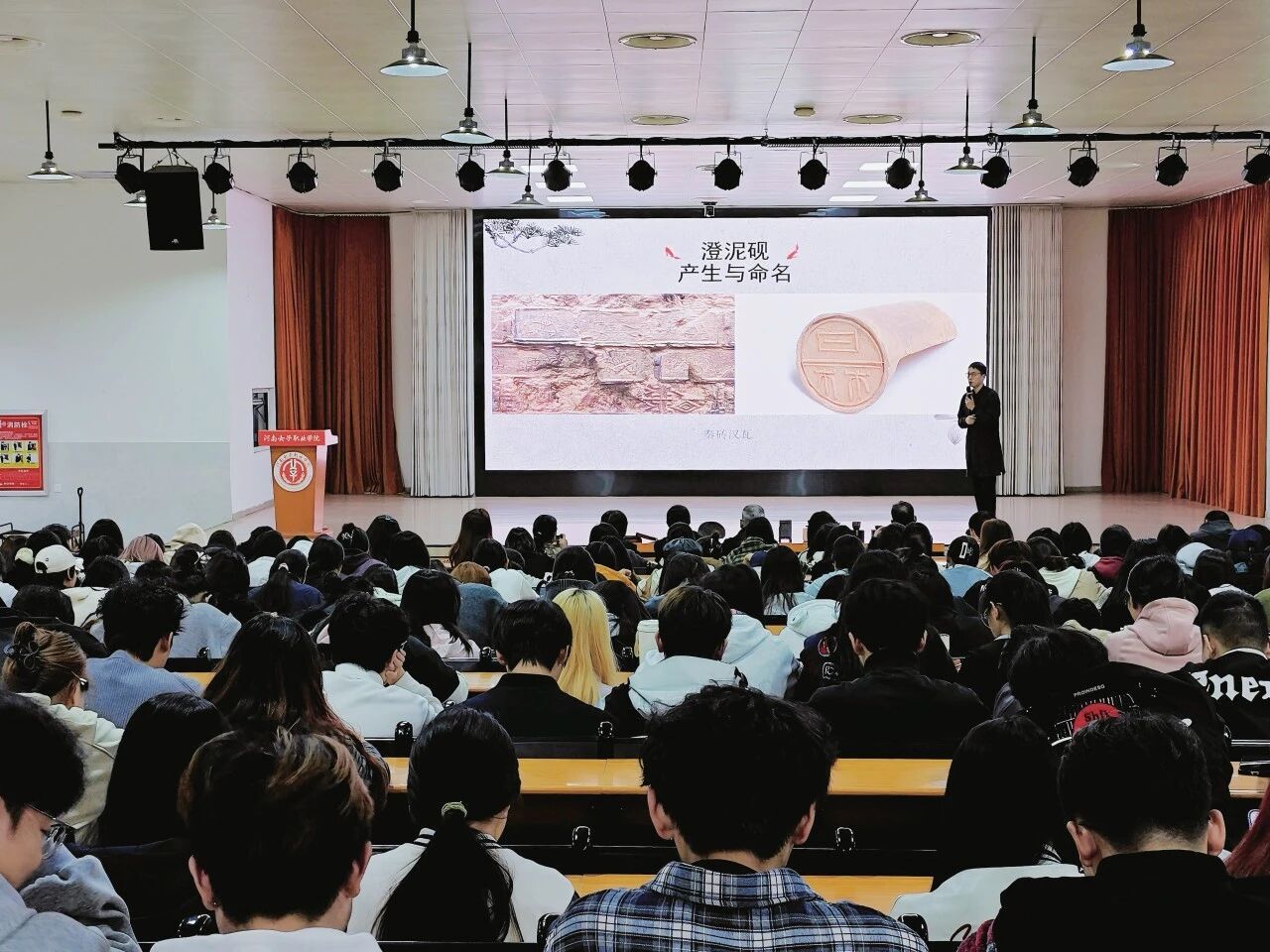 讲座中,李喜阳通过“砚的起源”“砚的分类”“澄泥砚在中国砚史上的地位”“澄泥砚的工艺与命名”“澄泥砚产地”“澄泥砚的创新”“感悟”等七大模块,为师生详细梳理了先秦以来“研”到“砚”的传承发展脉络,总结出凝聚着匠人心血的“取泥、澄滤、制坯、塑形、烧制”等30多道工序,并介绍了不同时期澄泥砚的特点。他指出,澄泥砚始于汉朝,盛于唐宋,具有贮水不涸、历寒不冰、发墨而不损毫等优良特点,迄今已有千余年历史。从唐代起,黄河澄泥砚和端砚、歙砚、洮河砚被并称为“四大名砚”。唐宋时期的澄泥砚讲究质地坚密,触感如婴儿肌肤般细腻,明清时期,雕刻工艺愈发精巧,花鸟、山水等图案栩栩如生。结合各时期澄泥砚图片展示,在场师生沉浸式体验到了传统工艺的演变与魅力。