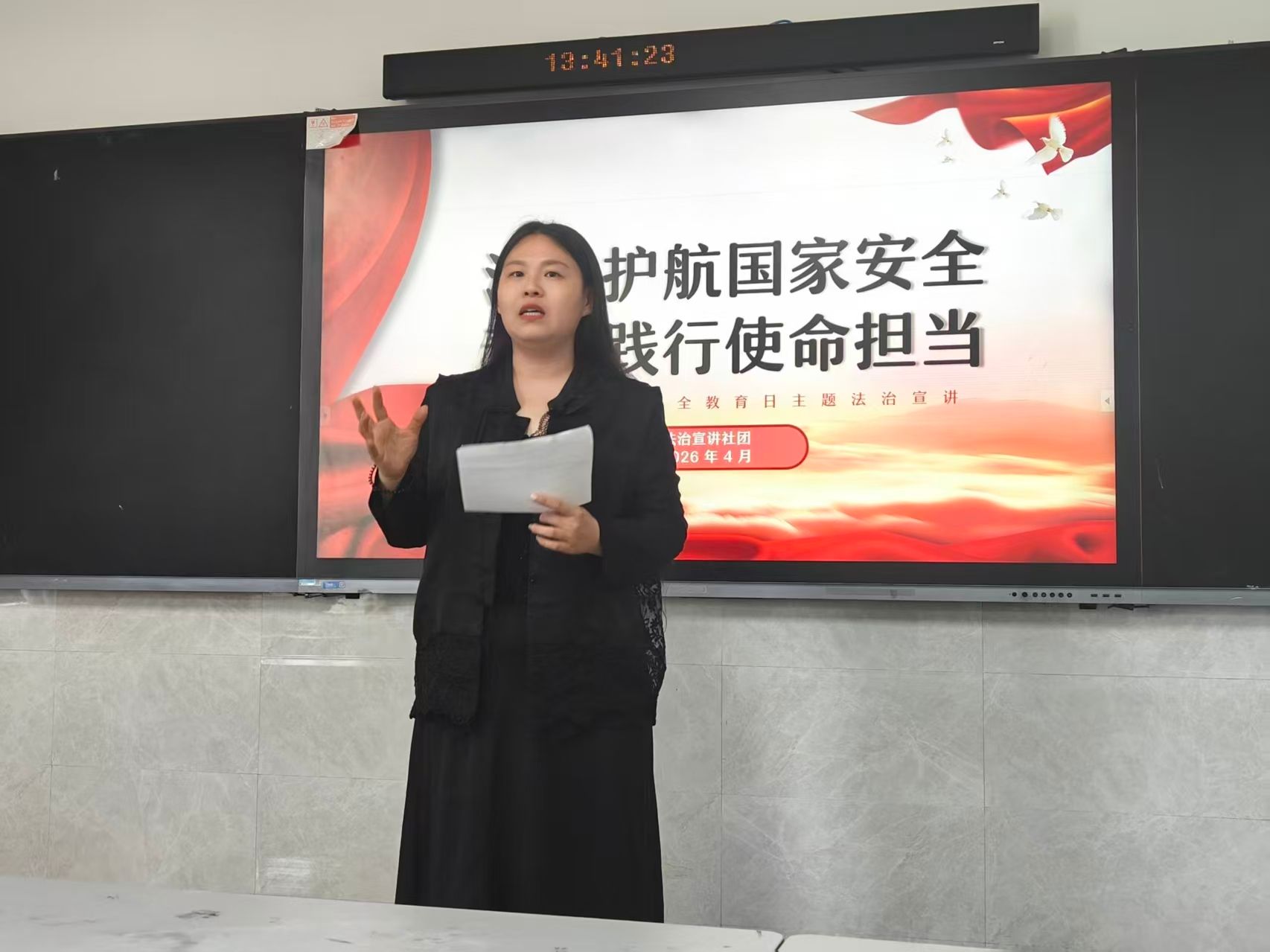 为深入学习贯彻党的二十大和二十届历次全会精神,深入践行习近平法治思想,加强青年学生法治教育,厚植青年学生法治信仰,4月14日下午,我校法治宣讲团成功举办“法治护航国家安全 青春践行使命担当”主题宣讲比赛。社团全体师生齐聚一堂,以青春之声传递法治力量,用精彩宣讲展现新时代青年的法治素养与责任担当。